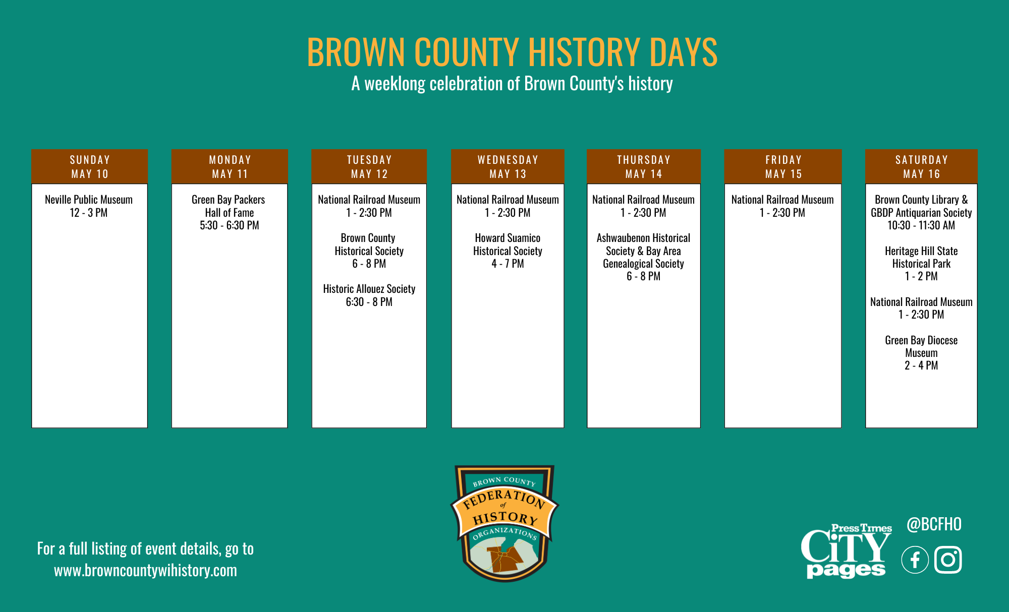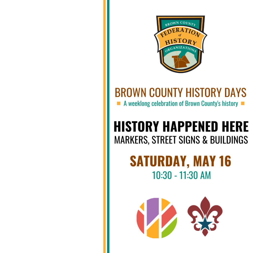 Explore Brown County’s history with a week of FREE programs. The public is invited to check out a slate of exciting and diverse events presented by expert staff in unique historical environments. Go to one location, or try and make them all!