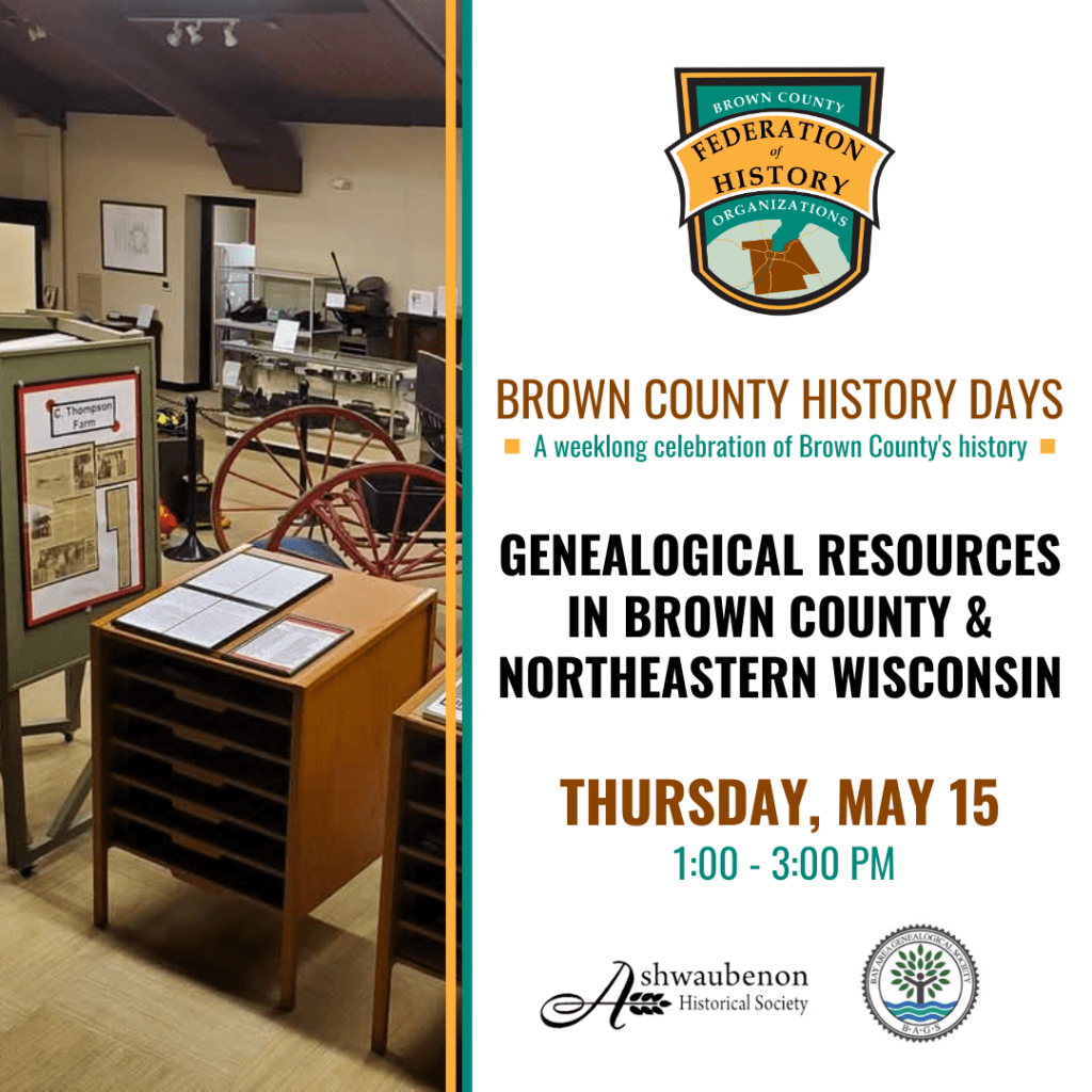 The Bay Area Genealogical Society, who is celebrating their 50th Anniversary in 2025, will present on genealogy resources that are available in Brown County and Northeastern Wisconsin. Discover what is available locally and what is available online that can help you in your family history research, including what you can find at the Ashwaubenon Historical Society.